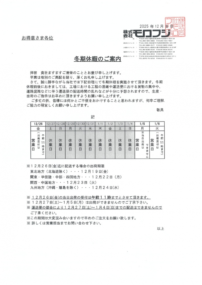 2025-12-05 冬季休暇のご案内【12/27〜1/4】